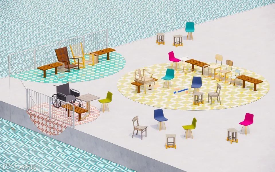 有的由学校椅子改装为摇摇椅,组合一起成为摇椅共享基地。有的利用有机玻璃穿上新衣服,让街坊能看到及摸到的同时,也能提高安全性。另外也有老式麻将桌,利用有机玻璃连接件安装在现有长凳,让街坊们一起细谈往事点滴。