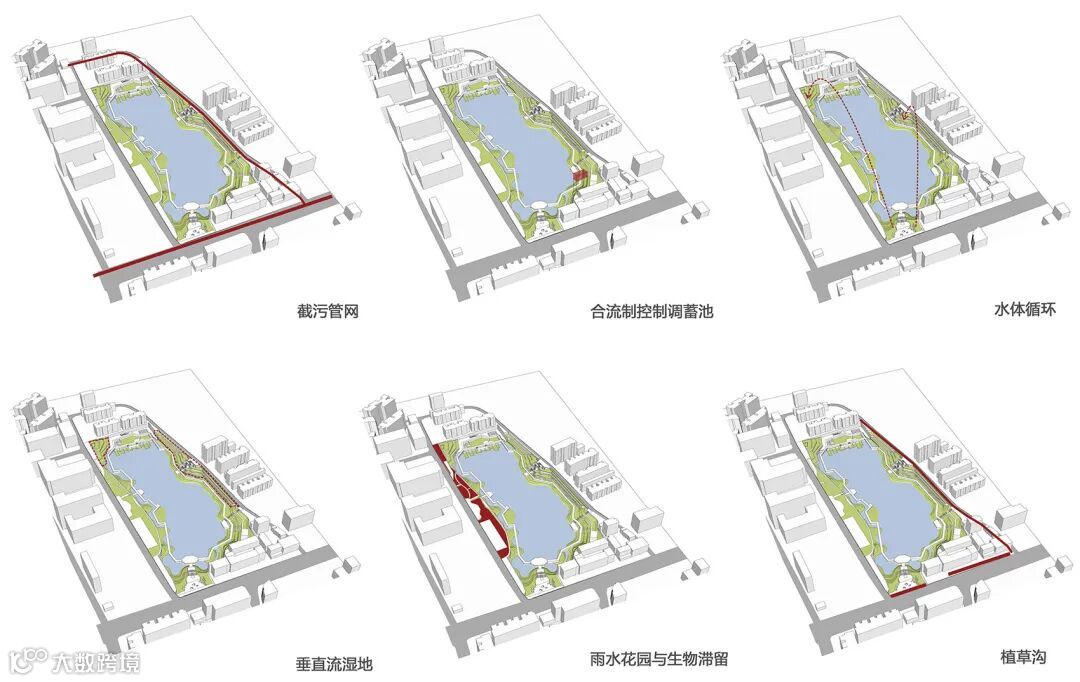 项目的整体水环境改造,采用“源头+中途+末端”的管控方式,统筹地上与地下空间,更多利用绿色措施,适当辅助黑色措施解决问题。