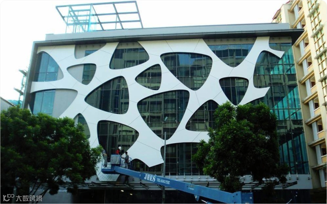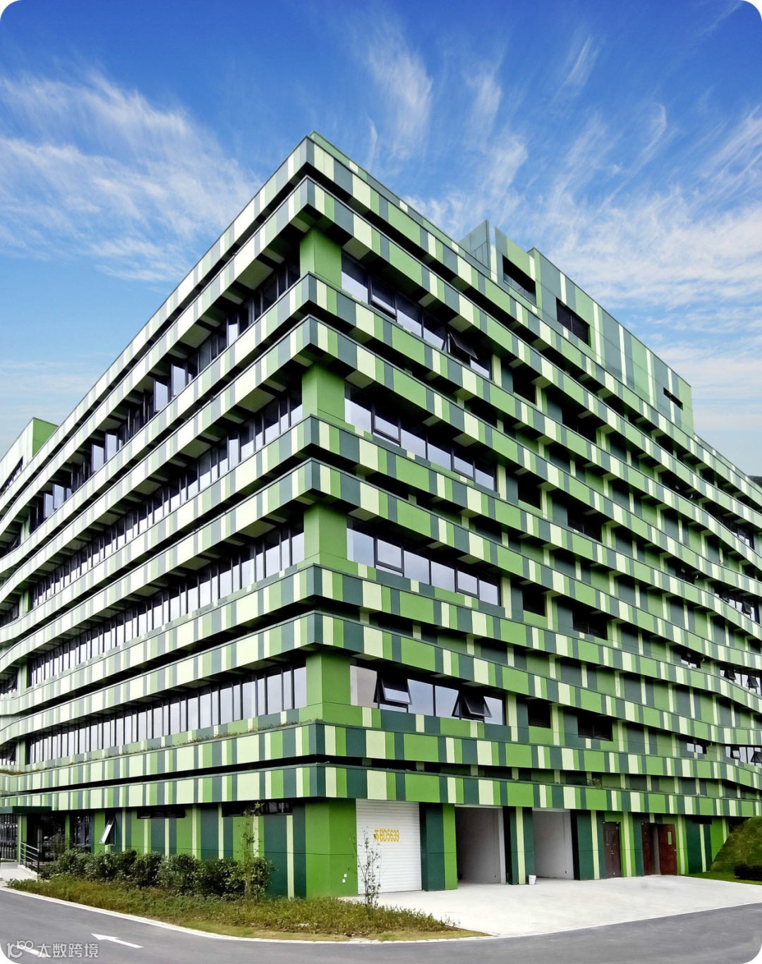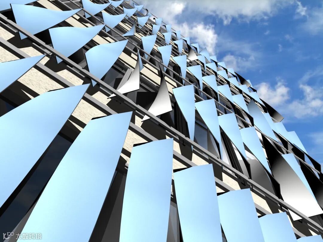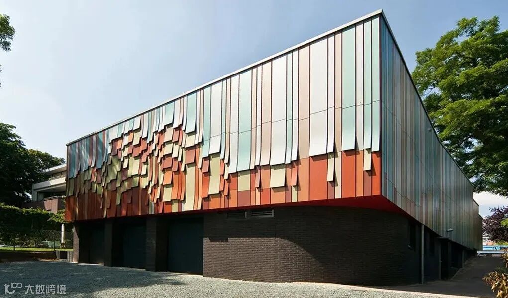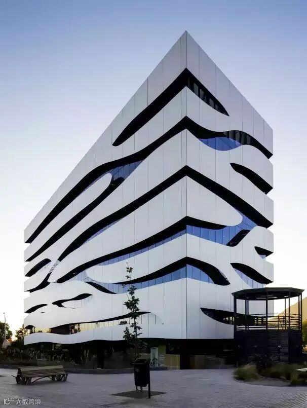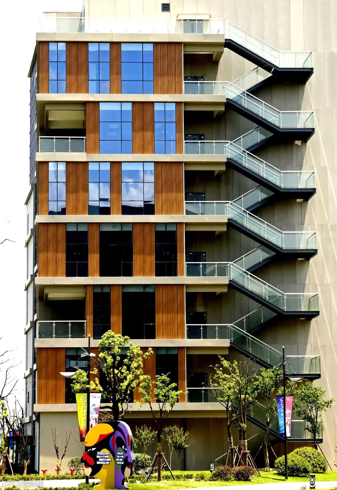 △ 金属色HPL板通过几何切割塑造三维立面效果