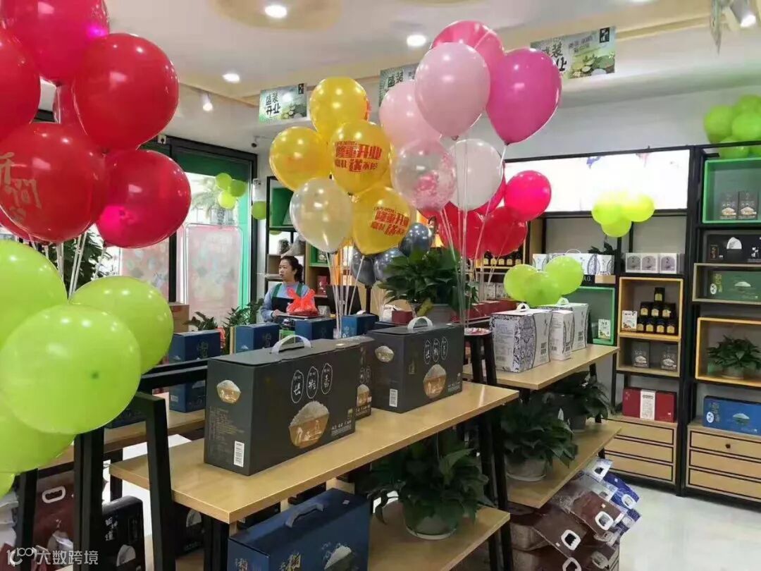 田坤道的设计师根据刘女士的店铺实际情况,为其设计的整体布局,展架摆设和货品摆设。在此基础上,刘女士增加了很多各种颜色的气球,使得开业的气氛更好的浓烈。