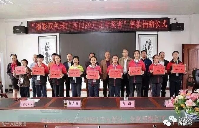 在当天的捐赠仪式上,团队成员的代表们为贫困学生们捐上了爱心款。“合山市实验初级中学是我的母校,捐出爱心款来建设母校,我觉得很有意义。”玉强表示,教育事业是我国的一项辉煌事业,希望受助的学生们以后也继续能将这份爱心延续下去。团队的成员们也表示,今后还会到当地的养老院、福利院开展一些慰问活动。同时以后也继续购买彩票,中不中奖无所谓,毕竟买福利彩票是在为公益事业做贡献。