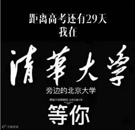 Duang,Duang,Duang~~~高考倒计时不到30天了,新一波招生宣传火了,“我在清华大学等你”的招生体文案走红网络。其他的大学套路了一下,我在清华大学的旁边的哪里哪里等你。不皮一下,都跟不上节奏了~