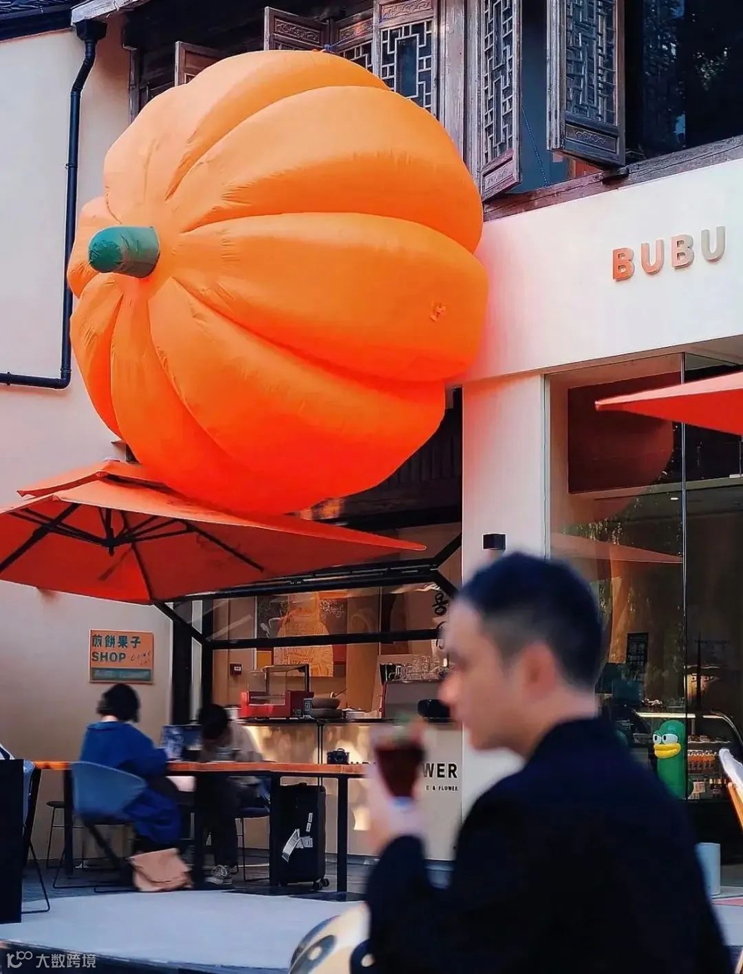 比如在店铺门口放置巨型标识物,就是个直接又简单有效的门头设计思路。