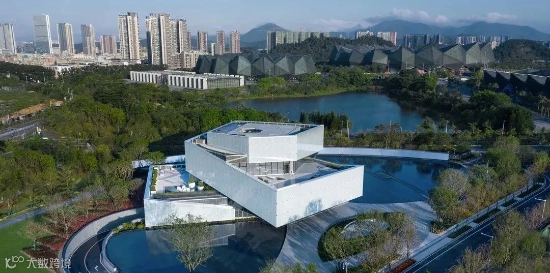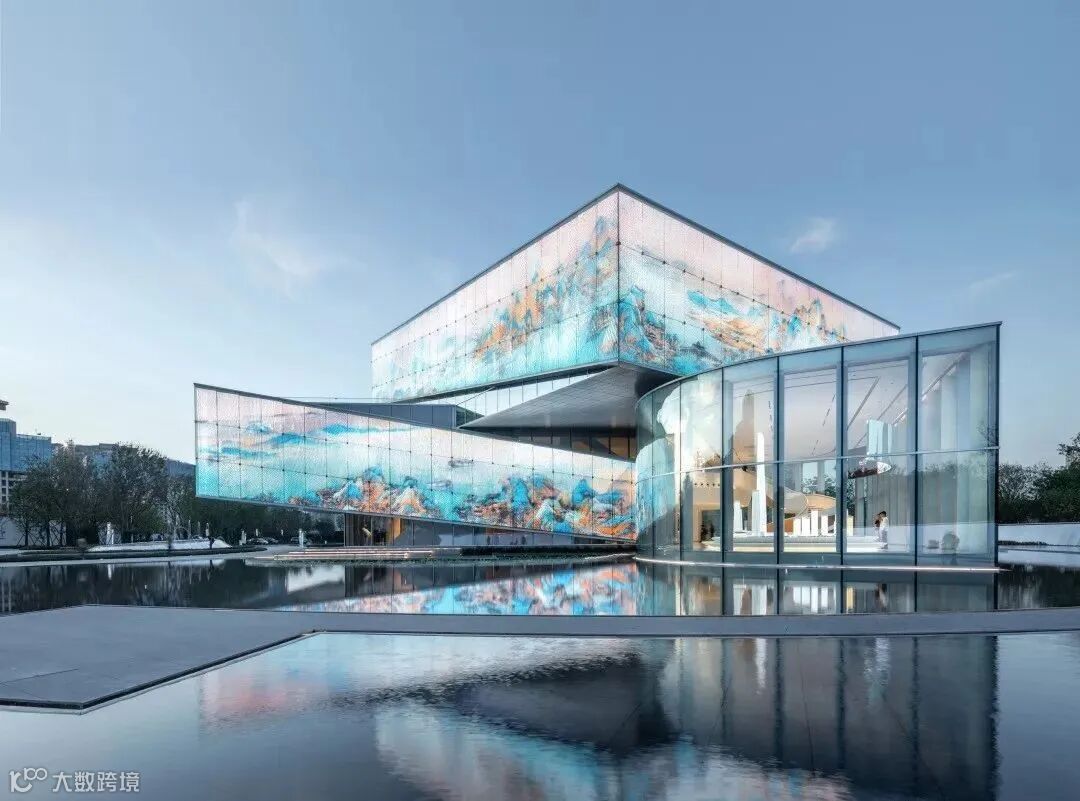 △傍晚,动态山水长卷旋绕建筑周圈,恢弘而激荡