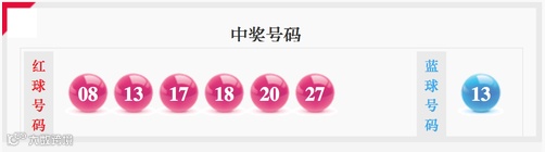 当期红球号码大小比为4:2,三区比为1:4:1;奇偶比为3:3。其中,红球开出两枚隔码08、27;一组二连号17、18;两组同尾号08、18和17、27;一枚斜连号27;一组偶连号18、20;蓝球则开出13。