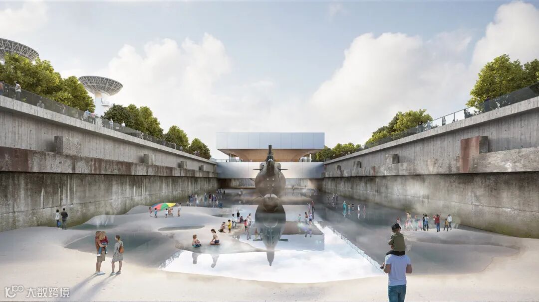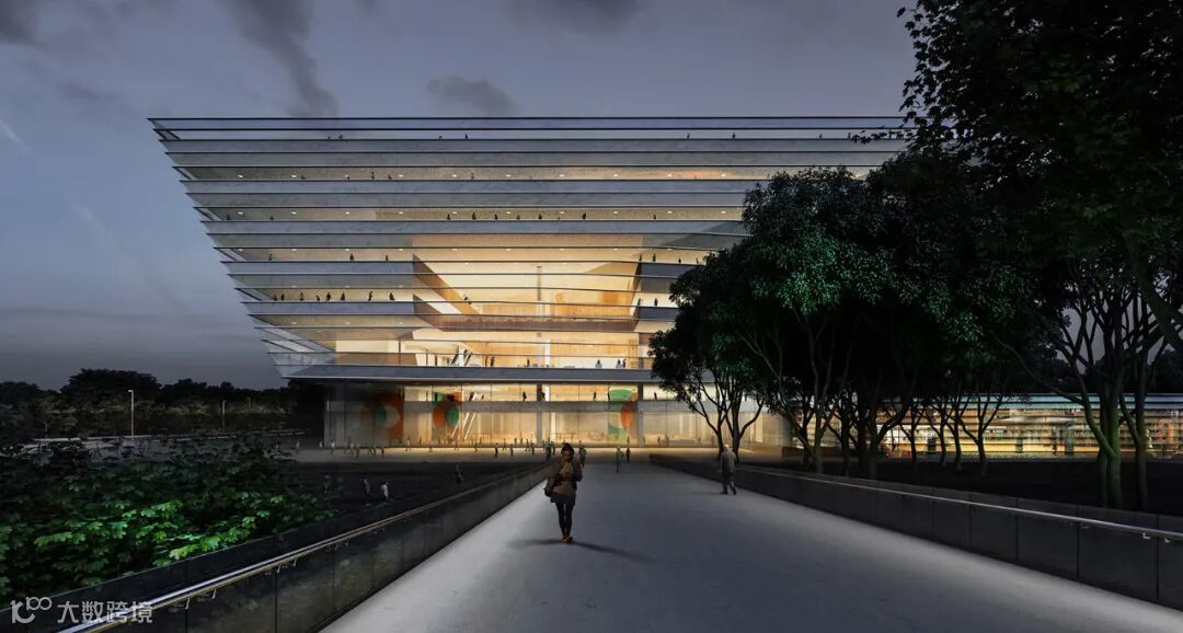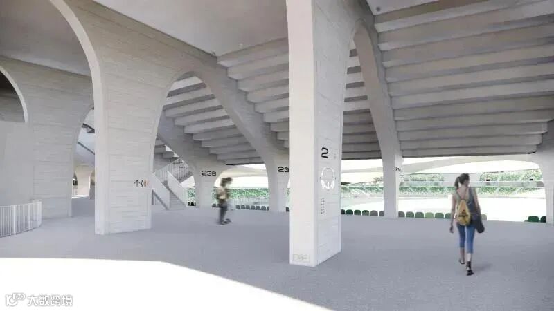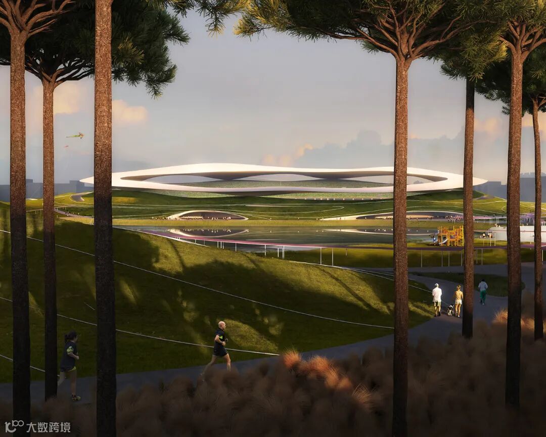 将体育场馆功能与自然地景相结合,在城市中心营造了形似火山群、镜湖的大地艺术景观。公园中的建筑打破传统体育场凸显结构力量的方式,而将其转化为一种更内在、含蓄的美。中央湖面同时为下沉式花园,人们在此,视线与水面相平齐,切实感受到被天、水围绕的奇妙与震撼。