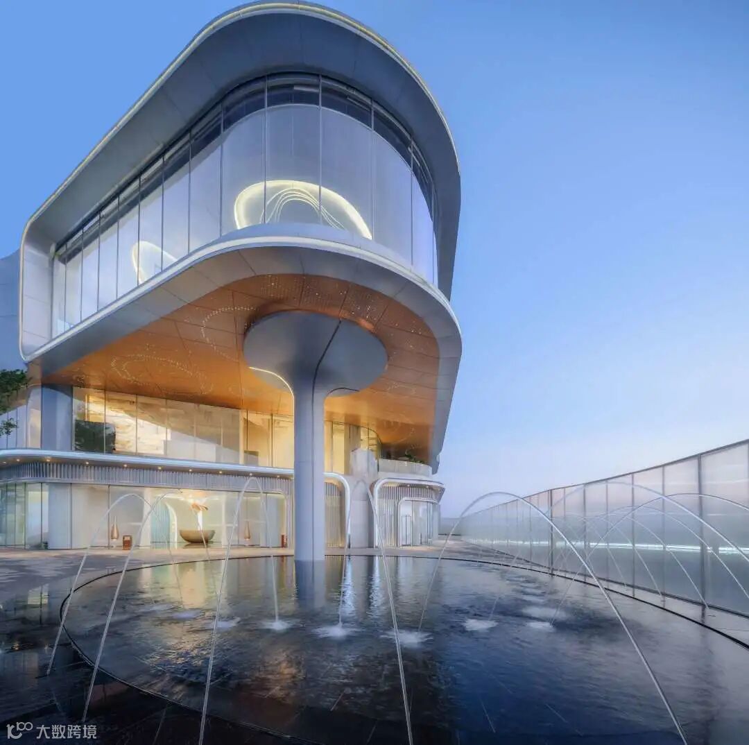 成都德信麓湖云庄设计灵感源于场地印象,不期而遇的高低落差,对于设计,是挑战也是机遇。临空的地形为设计师提供了创伤的灵感,决定以“游艇美学”的理念来解构建筑造型。