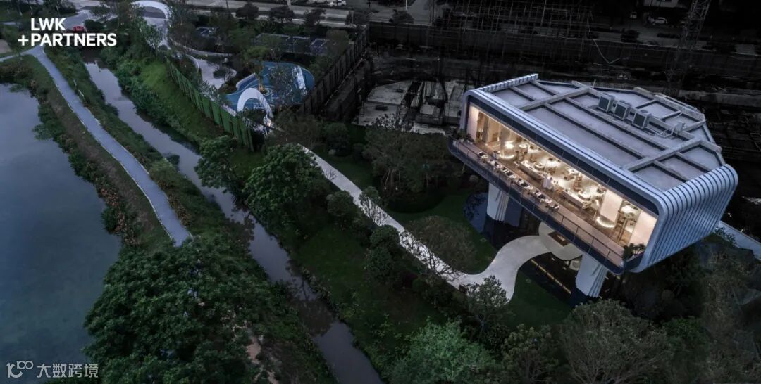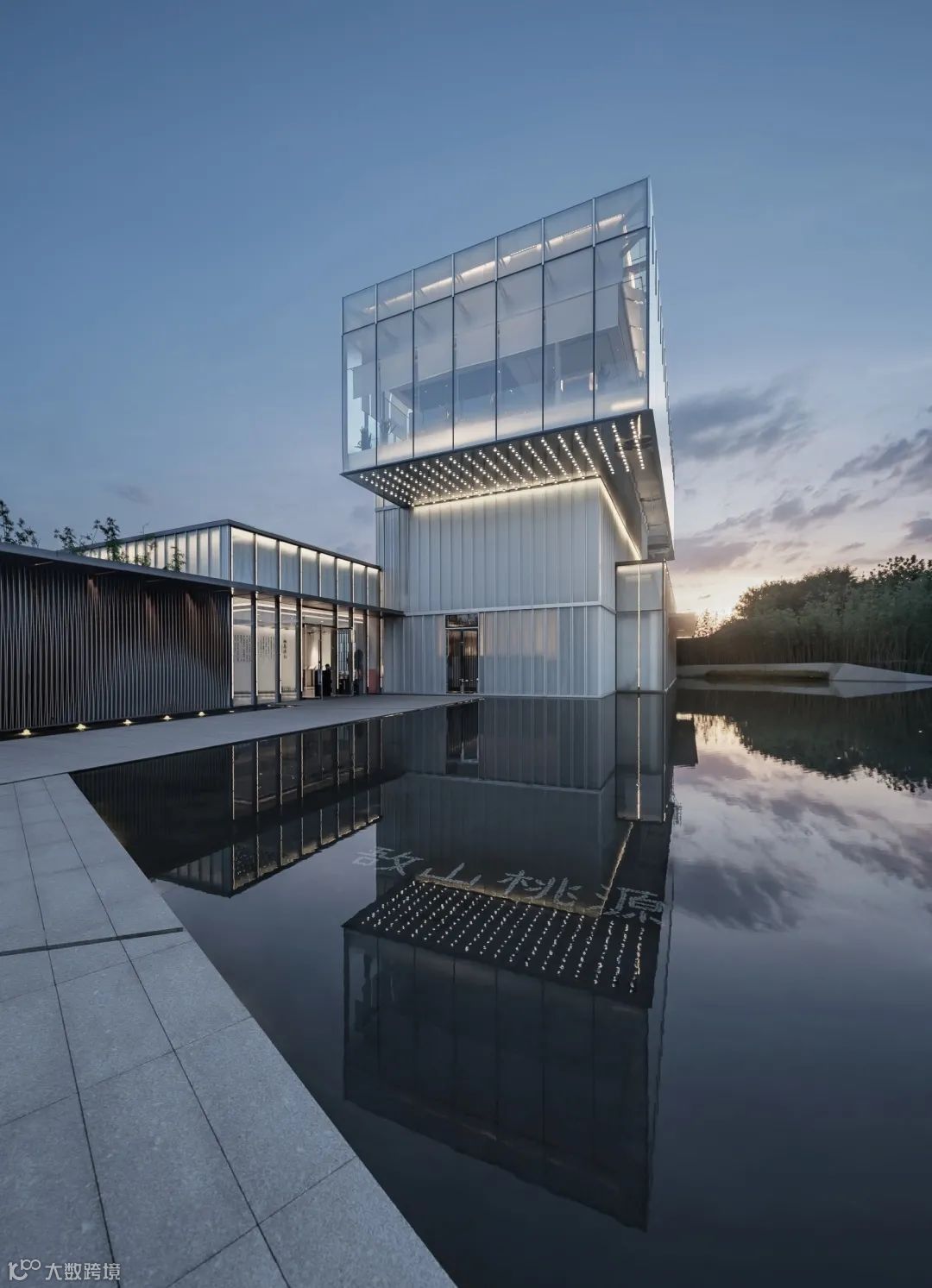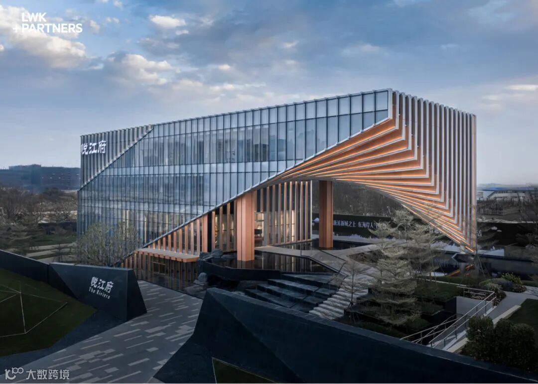 惠州旭辉 · 华宇东江公元展示中心,为了追求更好的视野,建筑尽量离开地面,示范区的设计便从东江取景展开。