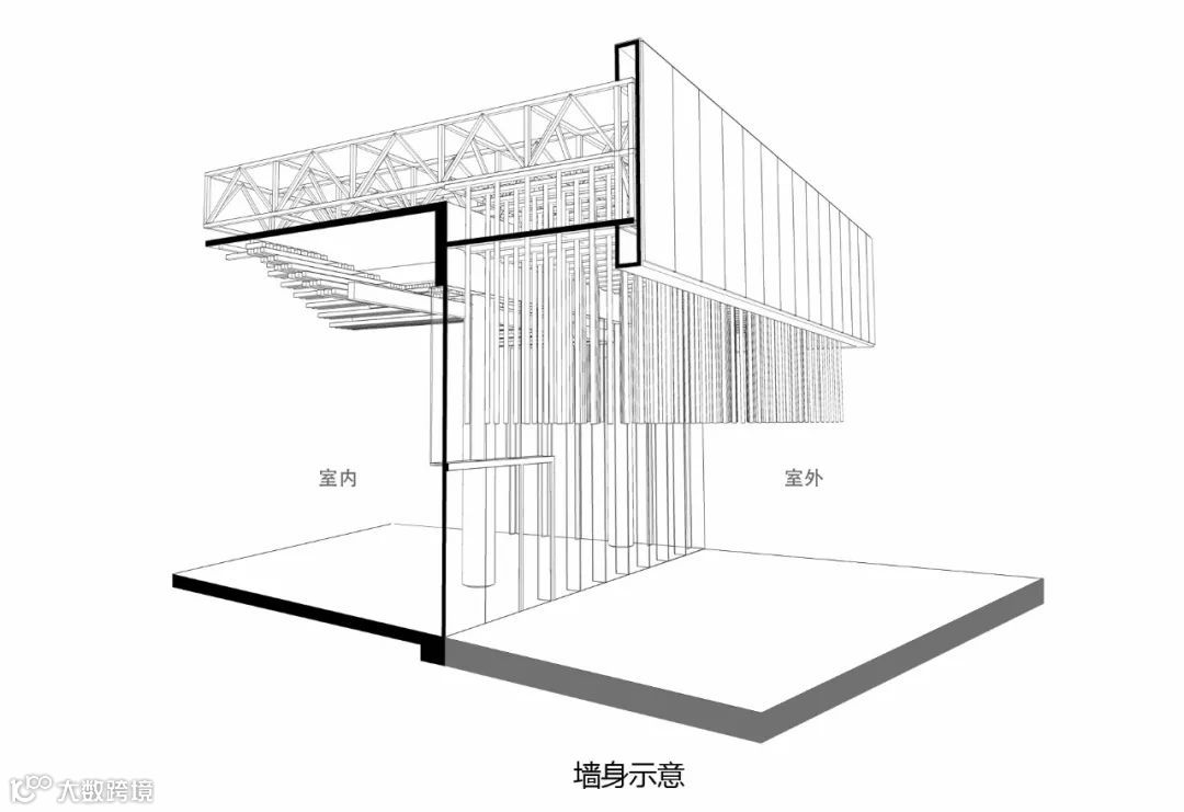 悬挑架空结构,不仅使建筑获得了开放空间,更使室内、室外空间相互渗透,形成开放与封闭空间之间的过渡灰空间,给人以开朗、活跃的心理感受。