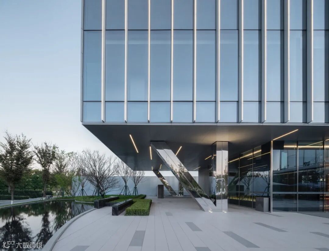 温州万科世纪公元主入口处建筑最远点悬挑将近6米,像漂浮的一座“展厅”,赋予建筑强烈的艺术表现力,打造出展示区独特的昭示性,简洁纯粹的体量塑造,于入口处营造出丰富空间的层次感,立体感。
