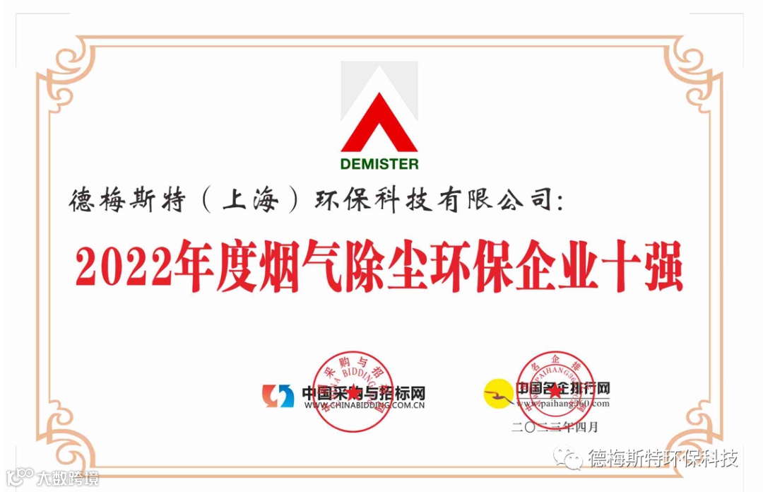 热烈祝贺德梅斯特荣获2022年度烟气除尘环保企业十强