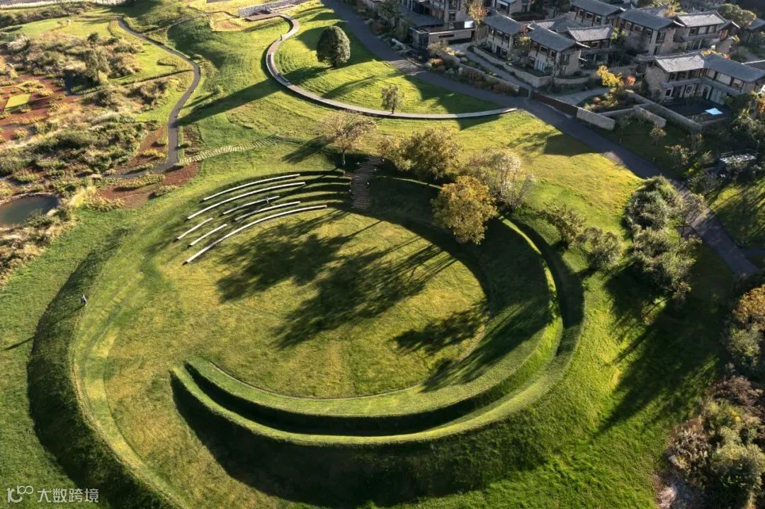 带着地景艺术的设计往往以一种更为原始的形态展现,以点、线、面为基础,圆形、矩形、螺旋线、锥形等等,随着地形的起伏,为人们呈现出更为艺术的场所空间。