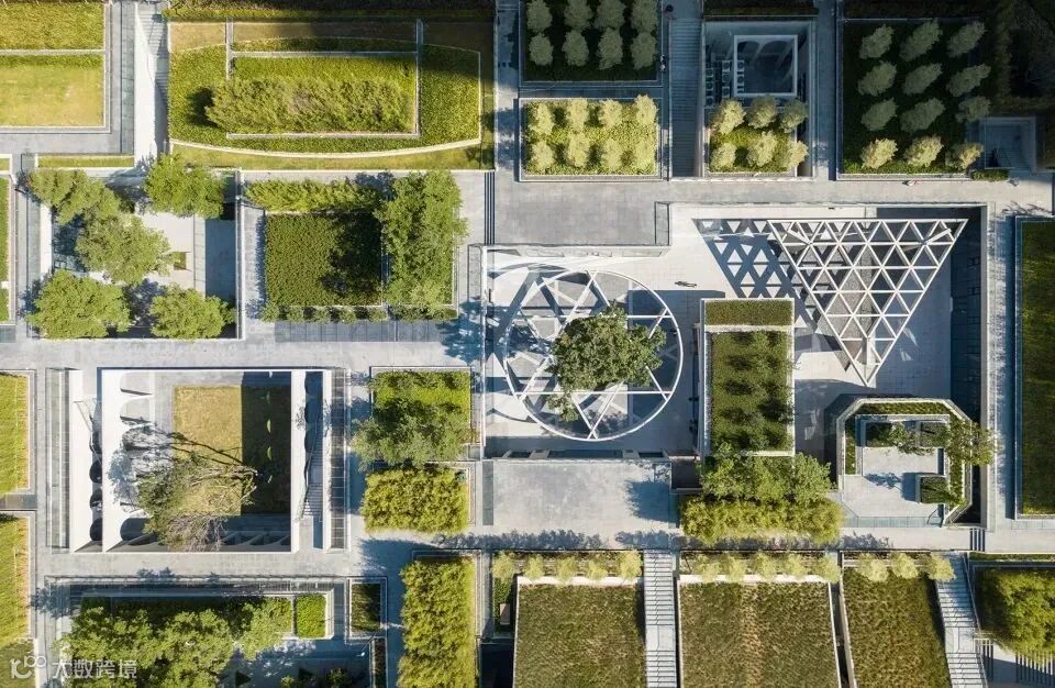 几何形式被以“原型形式”的方式运用,简洁抽象的构成在景观空间中形成一种气场。