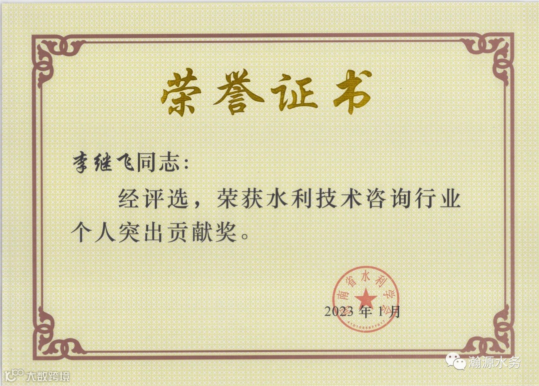 六、李继飞同志荣获水利技术咨询行业个人突出贡献奖