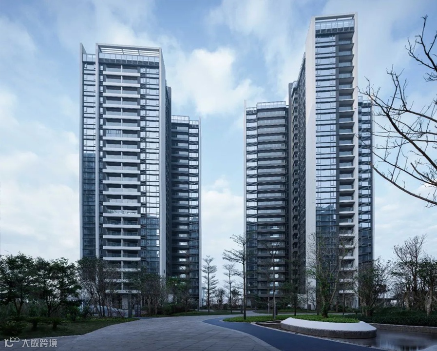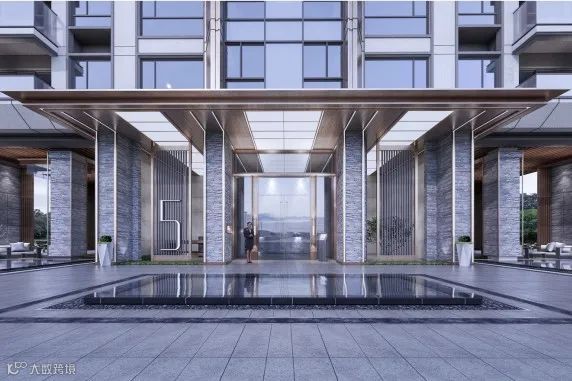 比如成都融侨·望云建筑外立面采用大面积玻璃设计,并由干挂石英瓷板作为基座,高层主体材质为米白色和深灰色真石漆,搭配香槟色和古铜色金属铝板更显奢华,局部点缀镂空金属格栅,凸显细节精致感。