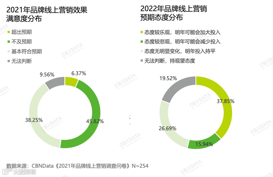 呈现出喜忧参半的态势。这一态势也延续到了对 2022 年线上营销效果的预期上,