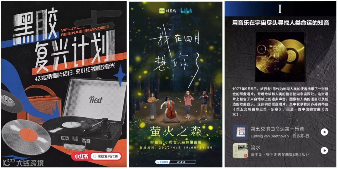 以腾讯音乐为代表,品牌围绕小众节日,积极献「声」,用音乐连接起各种情绪和想象。世界孤独症日,腾讯音乐公益计划举办「如果音乐有形状」孤独症音乐关爱艺术展,让音乐以具象的「形状」激发大众丰富的感官体验;世界航天日,腾讯音乐娱乐集团(TME)携手红砖美术馆与 QQ 音乐发起「寻找宇宙之声」企划,以听觉释放对浩瀚星河的无限想象;世界地球日,腾讯音乐娱乐集团则与 Discovery 探索频道展开合作,上线公益单曲,配合打造珍稀动物数字藏品,呼吁大众关注生物多样性。在充满不确定的大环境下,音乐也发挥出它「抚慰人心」「关照情绪」的重要功能。
