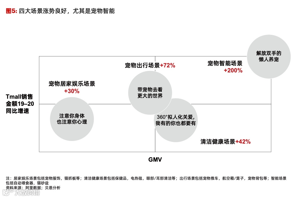 此外,伴随着人宠关系的愈发亲密,人宠之间的饲主关系逐渐被亲情关系所取代,行业也将延展出更多不断细化和创新的「拟人化」服务和产品形态。例如,基于宠物智能场景的自动喂食器、自动猫砂盆等。而随着宠物老龄化趋势来临,宠物医疗健康产品及服务也将面临巨大需求,更多线上医疗模式将得以延伸,作为线下的补充。