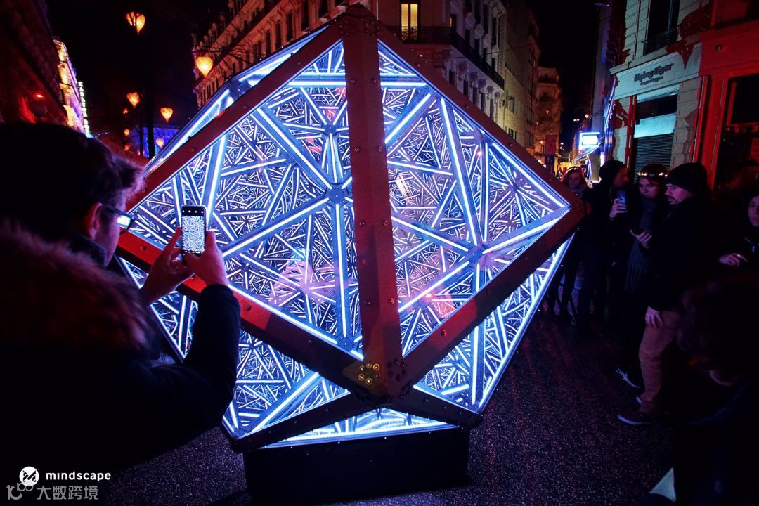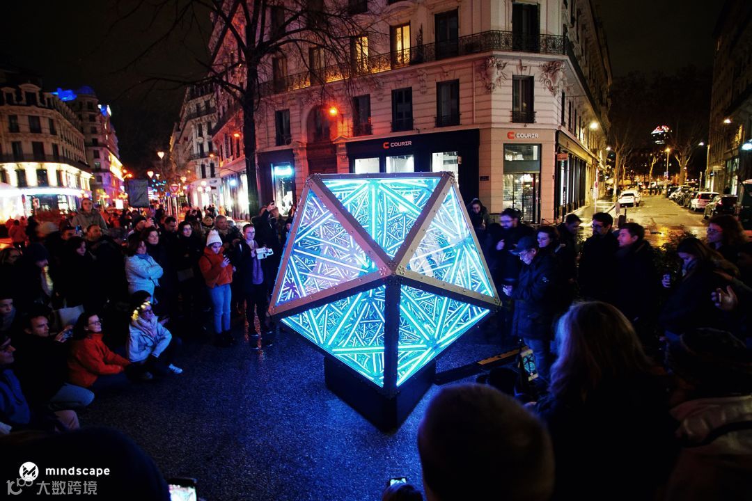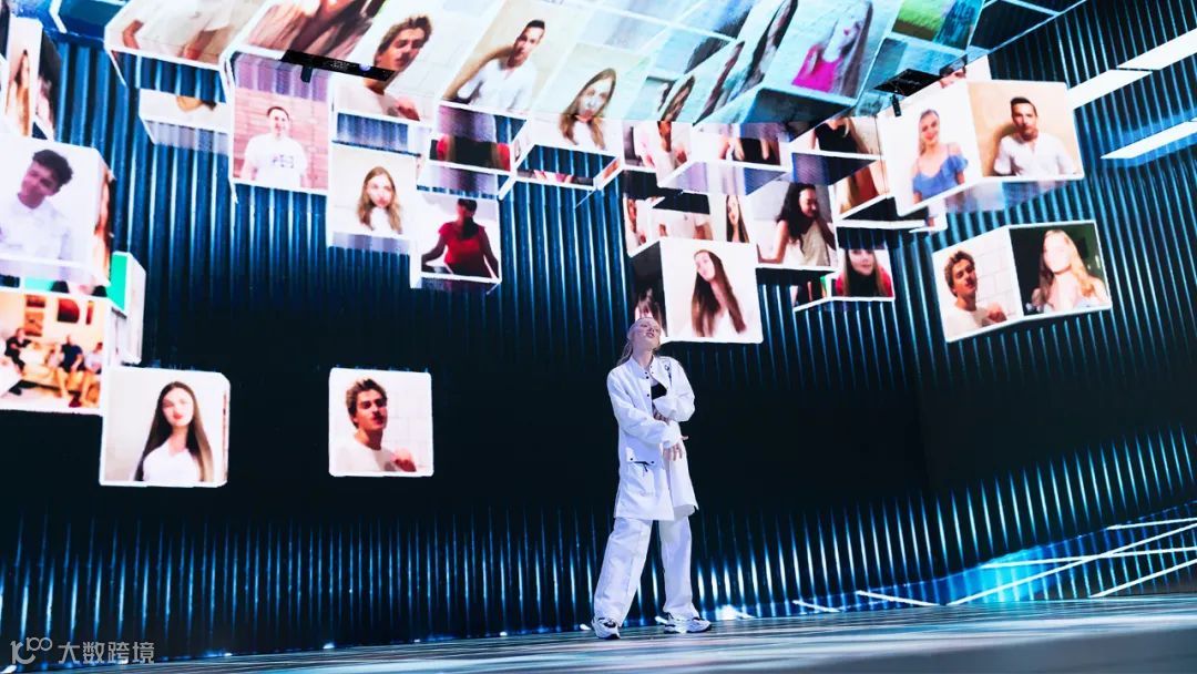 并与实时生成的内容同步,以强调10个单独控制的旋转Led全息屏的视差效果。