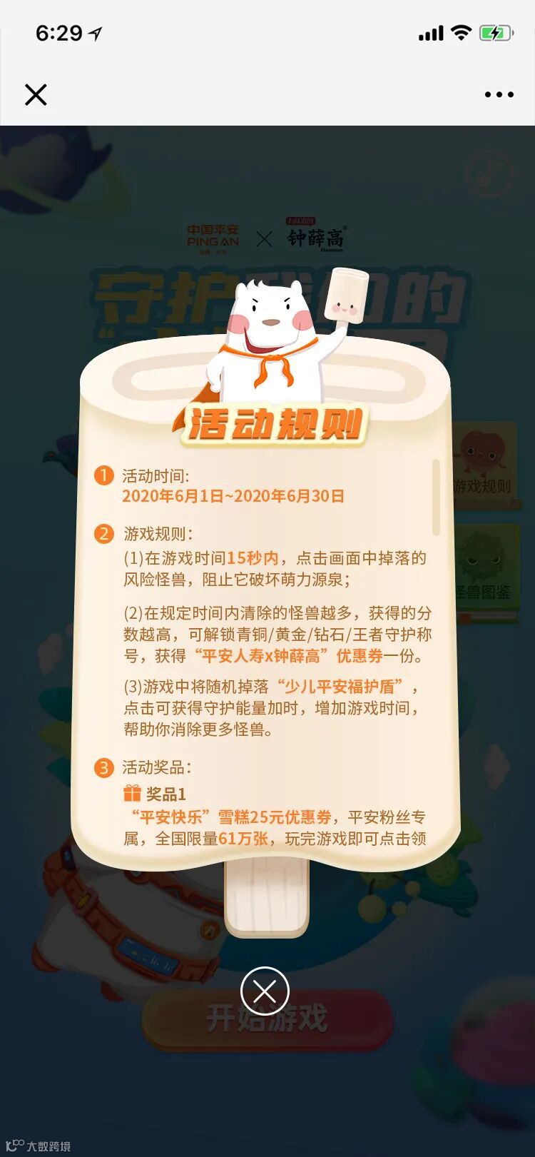 2.在规定的时间内,清楚的怪兽越多,获得的分数越高,可解锁青铜/黄金/钻石/王者守护称号,获得“平安人寿X钟薛高”优惠券一份。