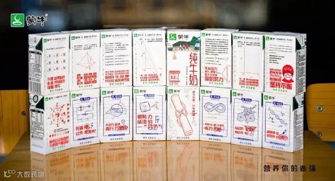 作为老牌奶企,蒙牛在高考中的营销手段丝毫不逊色互联网大厂。蒙牛推出了一系列“高考押题奶”,在外包装上印了高考科目知识点和练习题,同时还有“蒙什么都牛,做什么都对”的组合包装。如此一来,将喝奶与学习元素混合,又添加了一份好彩头于其中。