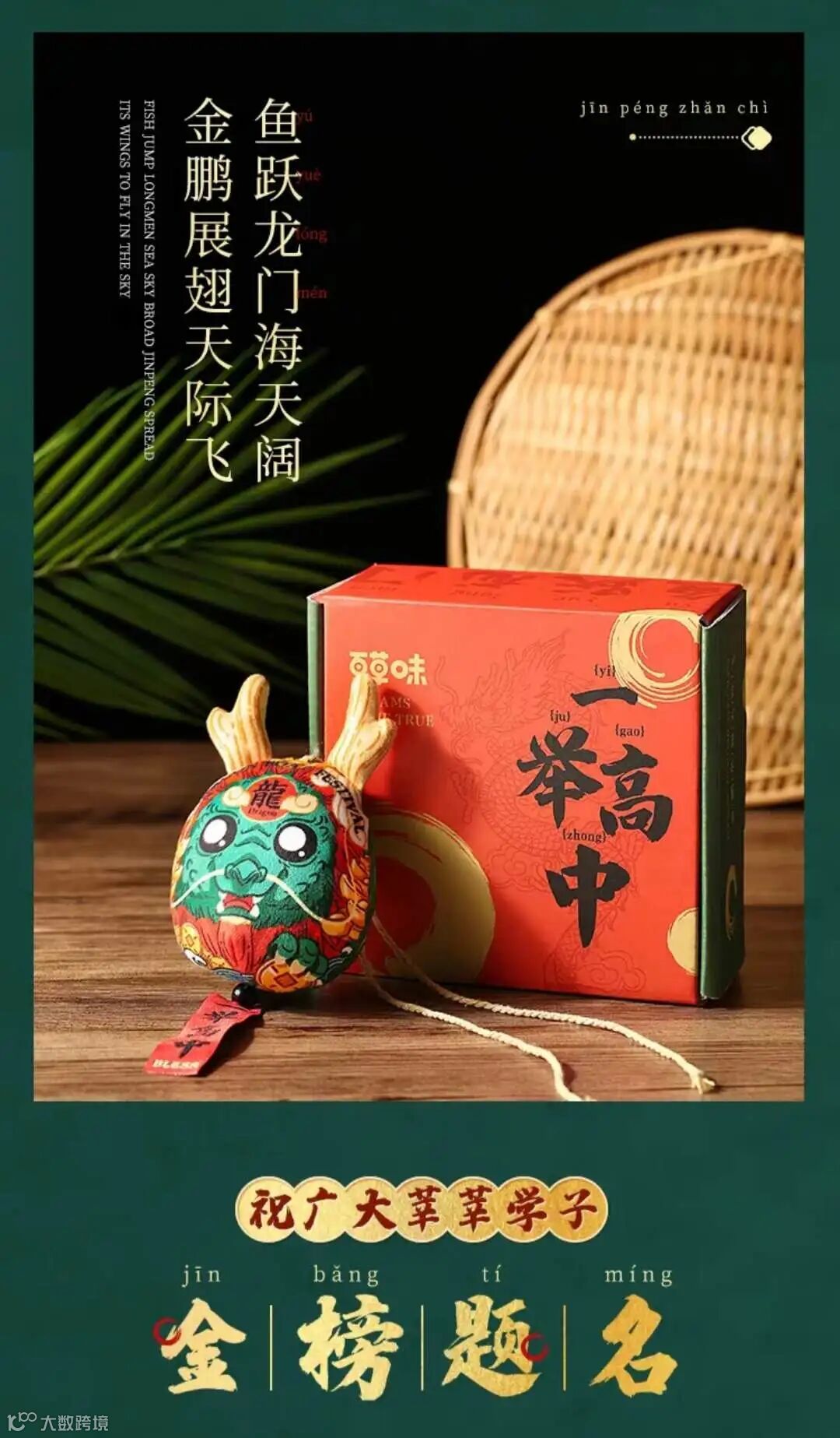 同为零食品牌的百草味推出“一举高中”零食大礼包,并送上定制祈福香囊。小赠品能够以低成本增强消费者的满足感,而好看的赠品则事半功倍。百草味此次赠送的香囊以“鱼跃龙门”为灵感,做成龙头的形象,看起来设计感十足,又俏皮可爱,诚意满满。