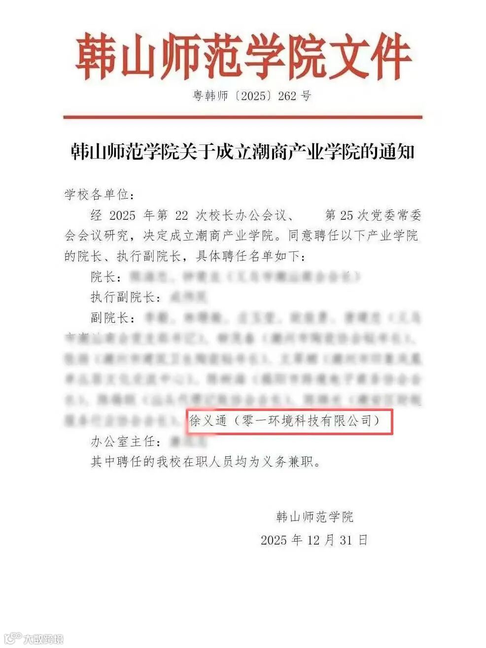 零一环境科技(广东)有限公司总经理徐义通获聘任为潮商产业学院产业副院长,负责乡村振兴行业企业相关工作。