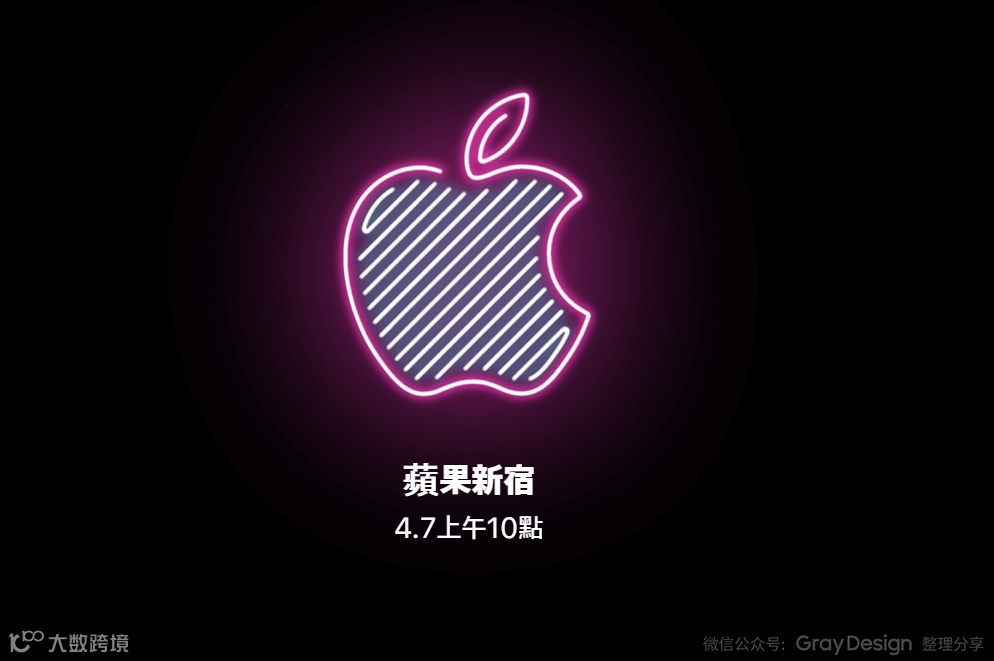 「Apple 新宿」的主视觉设计可以说是非常的「接地气」,将苹果LOGO和新宿字样采用符合新宿当地歌舞伎町特色的黑色背景,与繁华的霓虹灯搭配为核心元素。