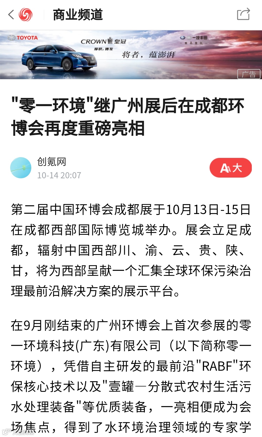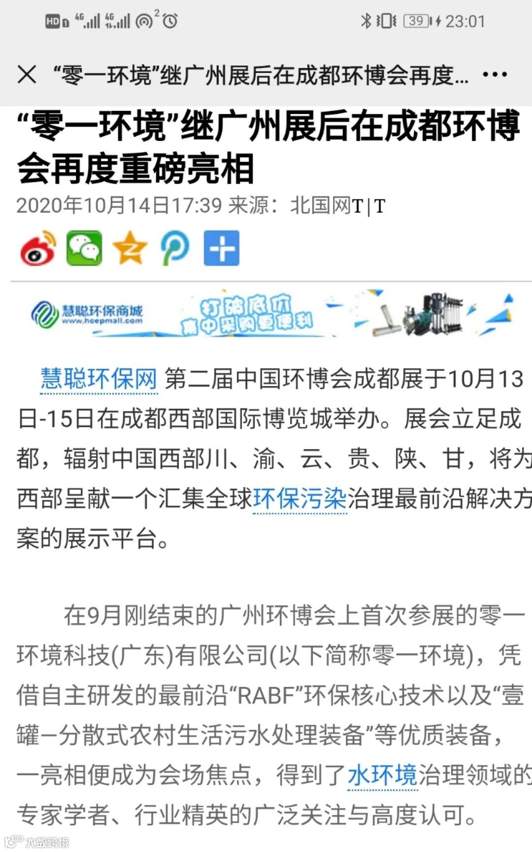 近日2020年最后一场环博会席卷了整个天府之国,行业大牛纷纷站台发声!零一环境有幸受邀参与本次环博会,多家优质环保垂直媒体争先报道,公司的独家核心RABF技术,也得到了众多业界精英的认可!