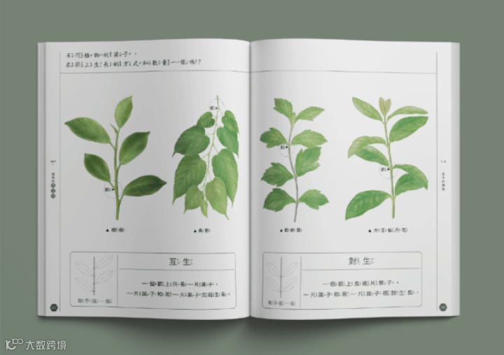 值得一提的是,不但是封面,就连书里的内容也增加了一些有趣的设计。比如在学习树叶互生、对生差异的章节加入了【动手描一描】的版块。