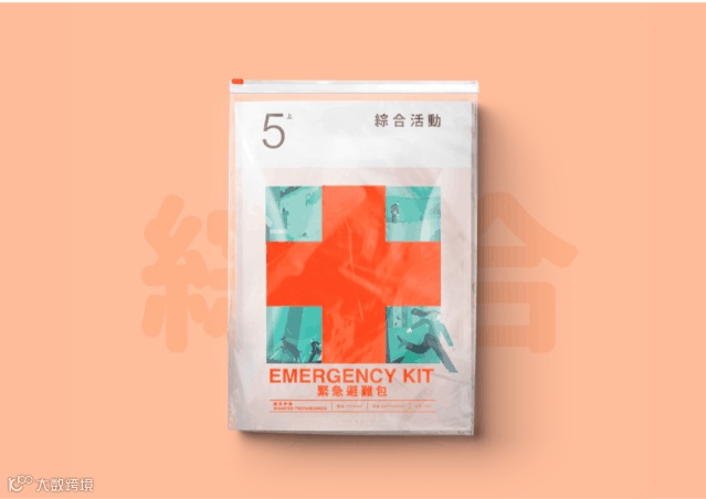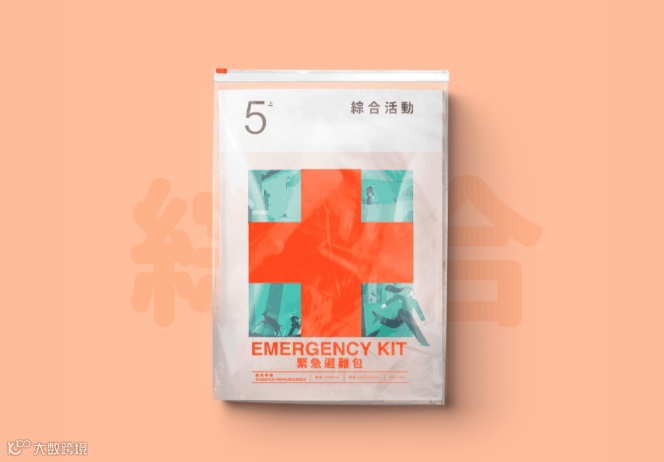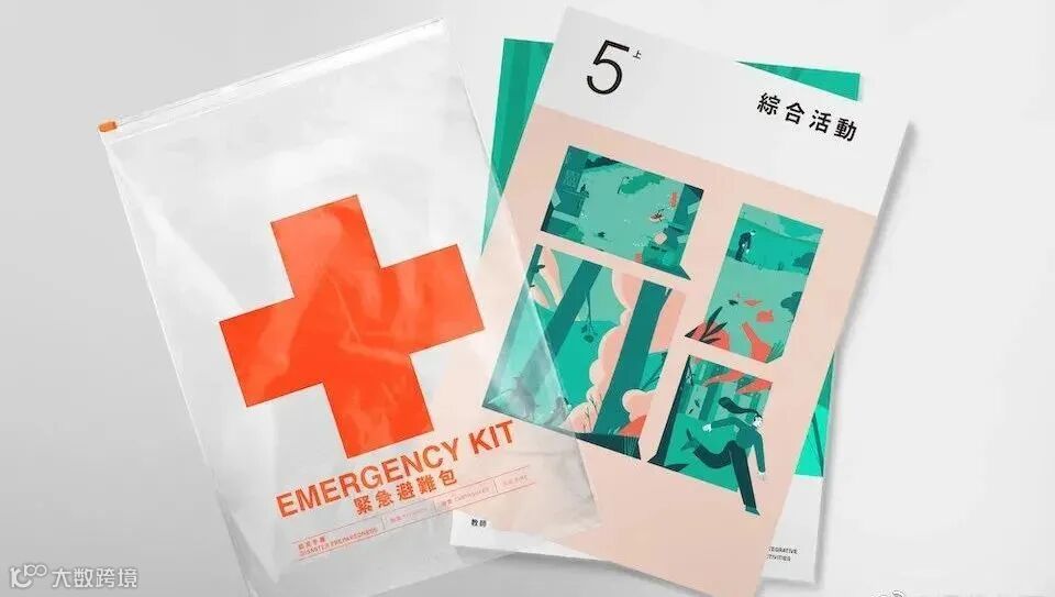 比较有意思的是教科书外观设计是“防灾包”的形式通过带有十字架图案的透明袋将课本和防灾手册装在一起。