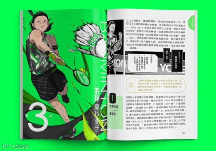 以荧光绿为主的封面给人传达了强烈的视觉效果搭配四个以漫画形式呈现的打球场景看着就很热血,很燃!