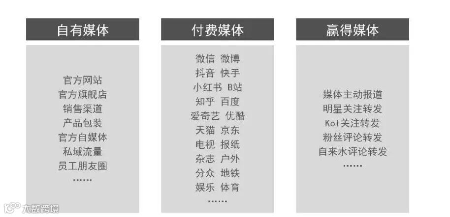 只有创意(内容)肯定不行,还必须有媒体(流量),可以有3部分构成:自有媒体、付费媒体和赢得媒体。