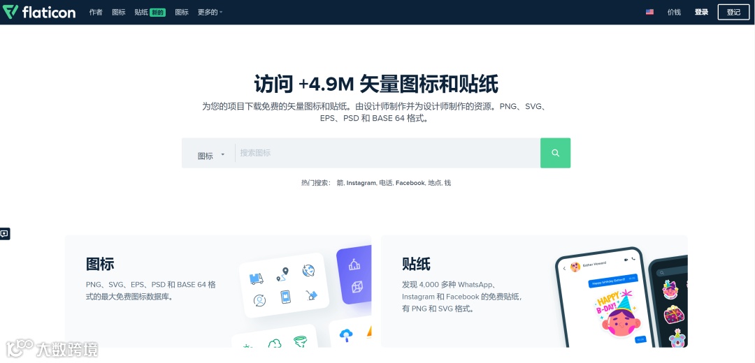 当然,为了弥补数量上的缺憾,这里再分享2个非常实用的图标库 flaction 和iconfinder ~多数免费,部分收费。