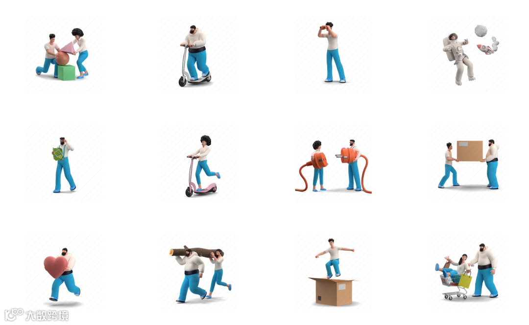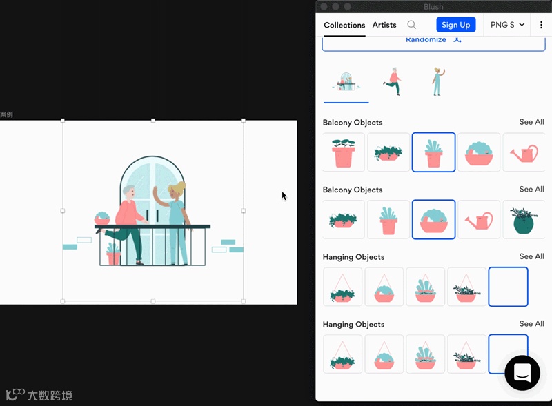 点击选取想要的插画风格组件库,可自由选取动作和形式等等。