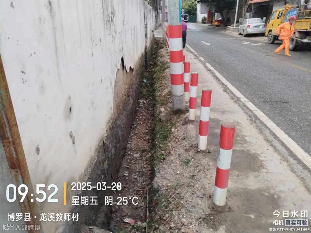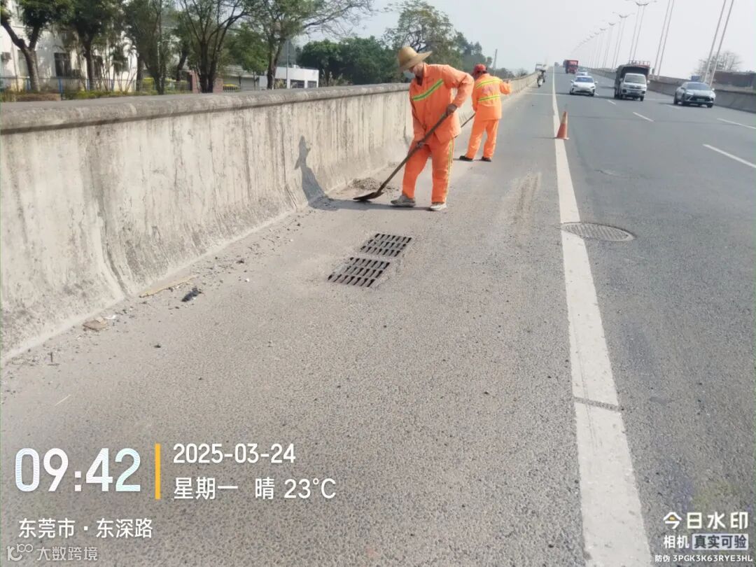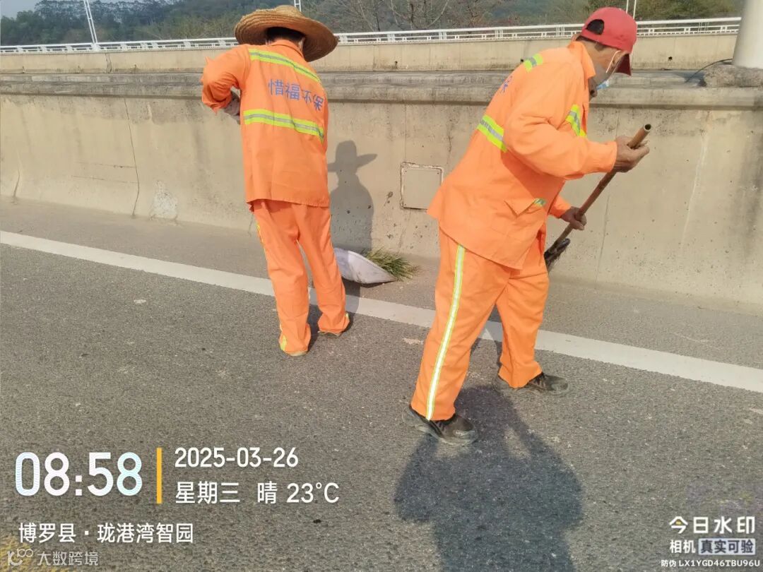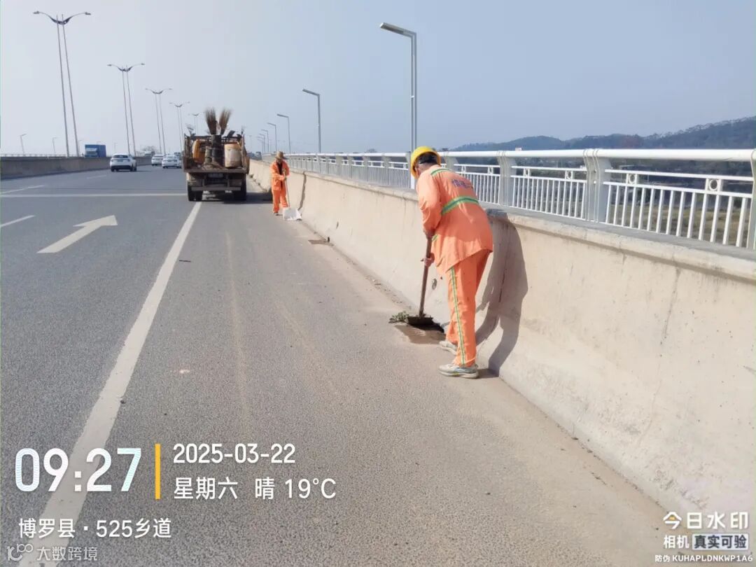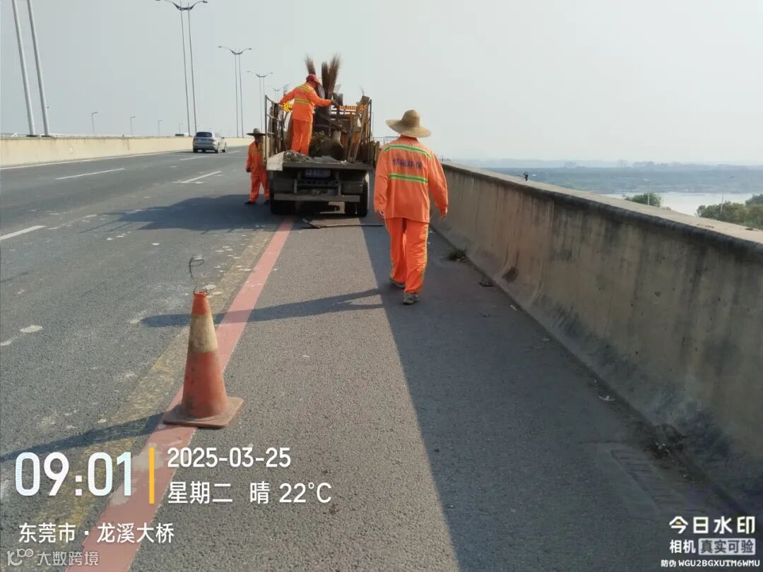 3、突击队重点清理龙桥大道安全岛及绿化带沙石。