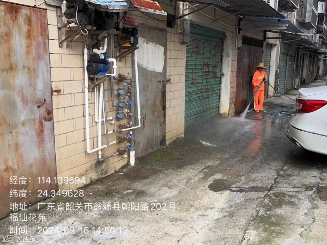 5、全面冲洗新老城区人行道,无业小区内,垃圾桶点等。
