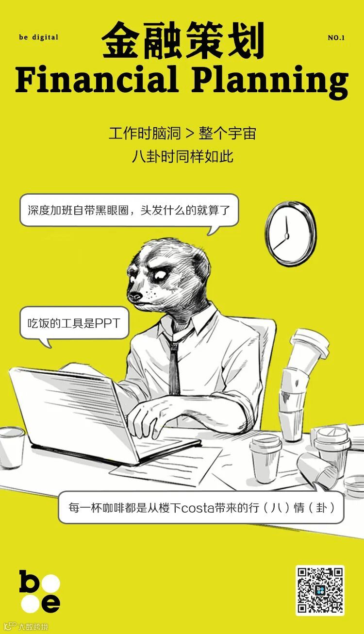 股票是在涨的,班还是要加的。有感于此,我们为世间纷纷扰扰都与我无关的金融人做了一组「金融圈社畜」的系列海报,与无数坚持拼搏的金融人共勉