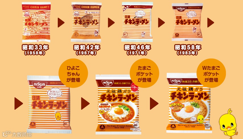 除了代言人选的美,ひよこちゃん(没想到吧,小鸡就是他的名字)也是功不可没,在形象代言人的岗位勤勤恳恳工作了62年,任劳任怨。