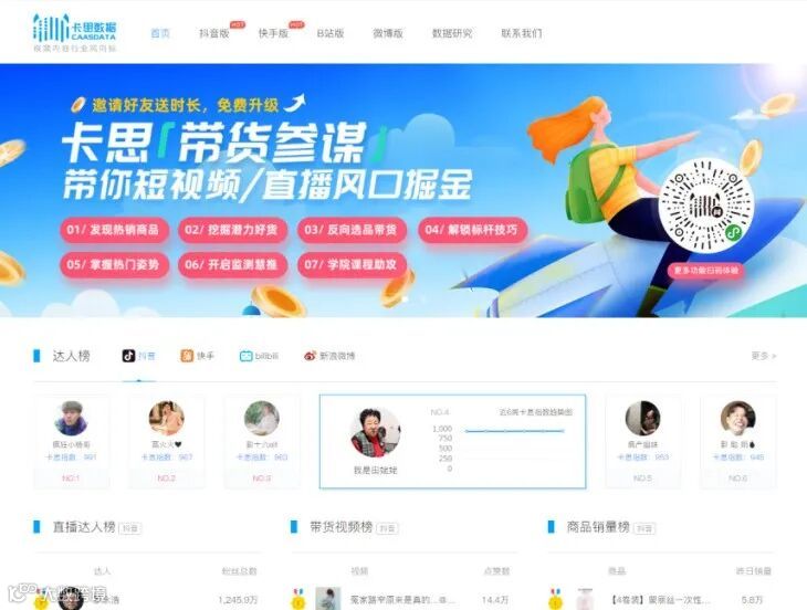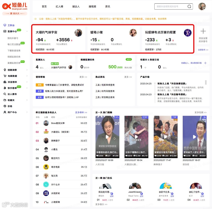 追踪热门的视频,音乐,话题及热点,可以多账户管理和检测,查找达人带货。还有一些短视频行业的报告哦~