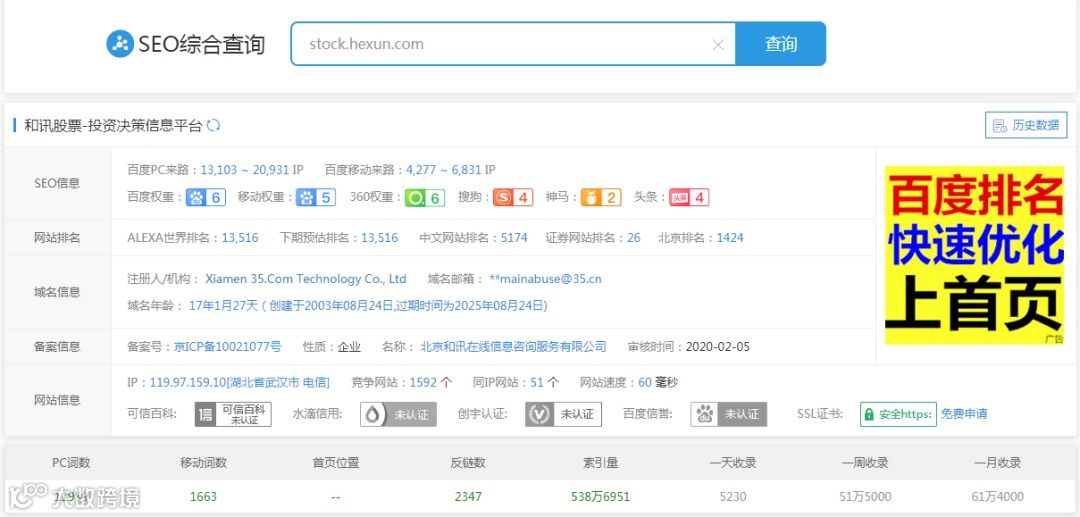 投网站广告的时候要注意了,一定要去筛选网站的水分,找权重高的,流量大的网站投放广告,这里提供一个非常有用的SEO查询平台,帮助大家投放的时候排雷!