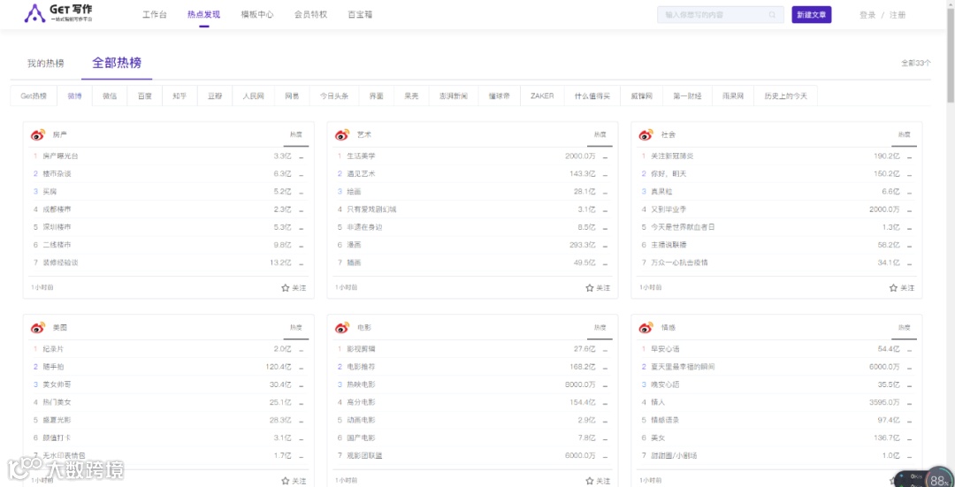 监察网络传播的热点话题,快速监控舆论走向。没事也可以看看大家的舆论动向,吃吃瓜也是极好的。