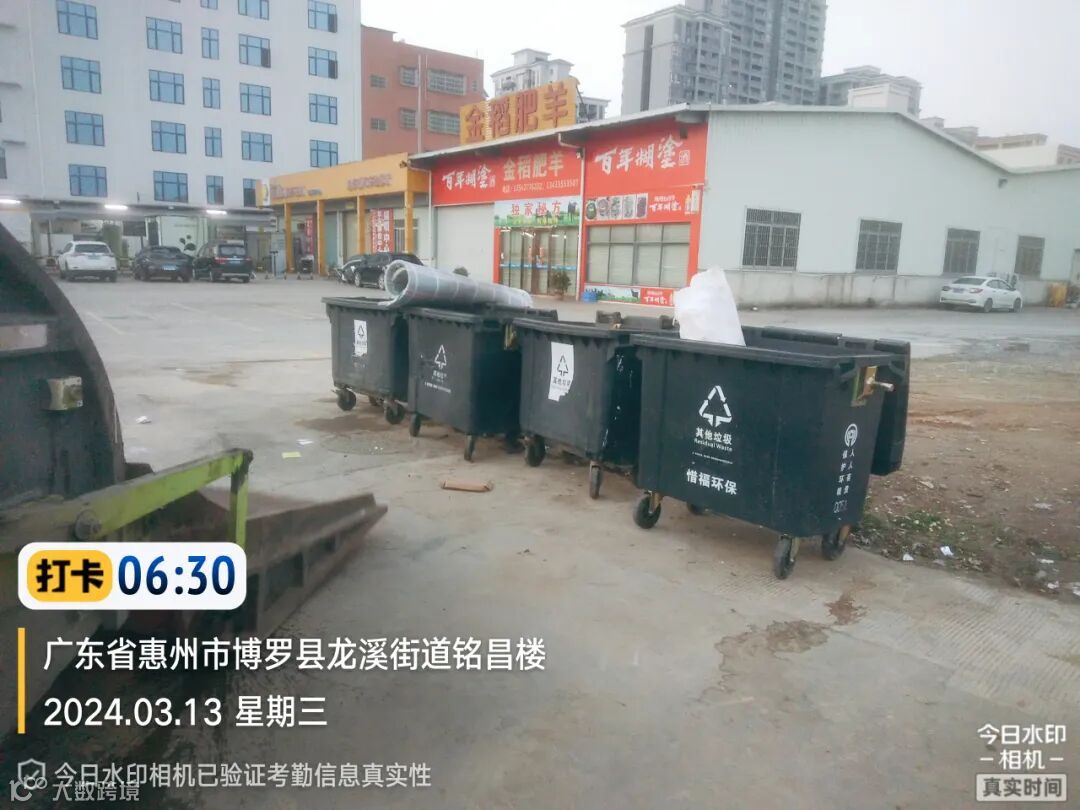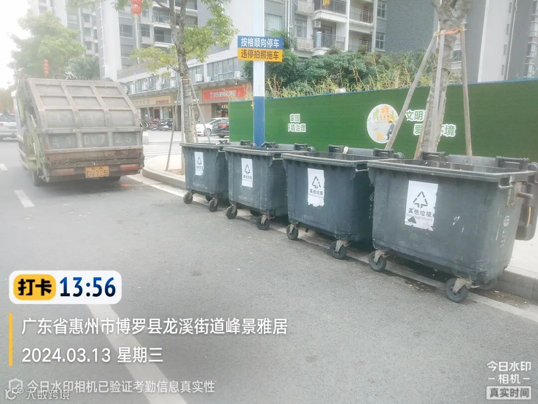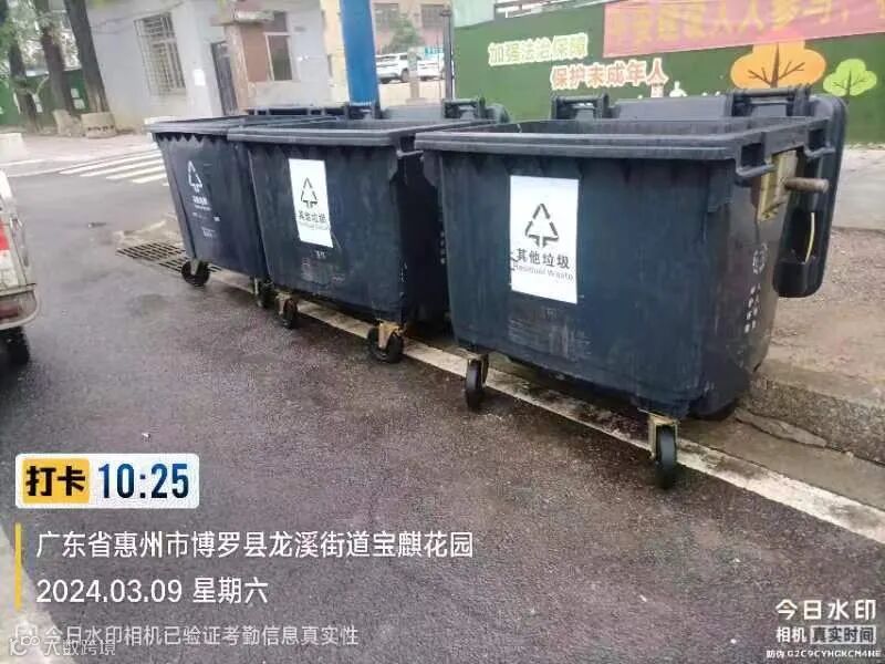 4、及时更换破损垃圾桶、补齐缺失桶盖,规范摆放垃圾桶。