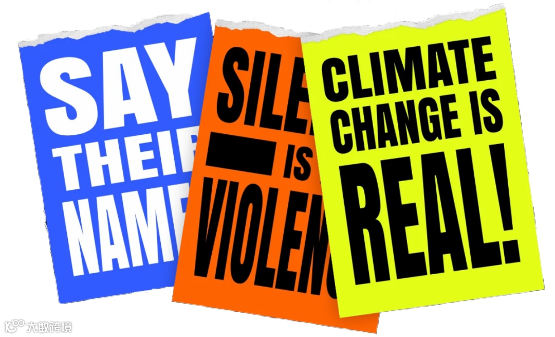 来教育、授权和提高对我们这个时代新问题的认识。传达强有力的、激进的信息并希望实现改变的需求将导致设计师定制设计资产,例如定制字体,插图和图标集。