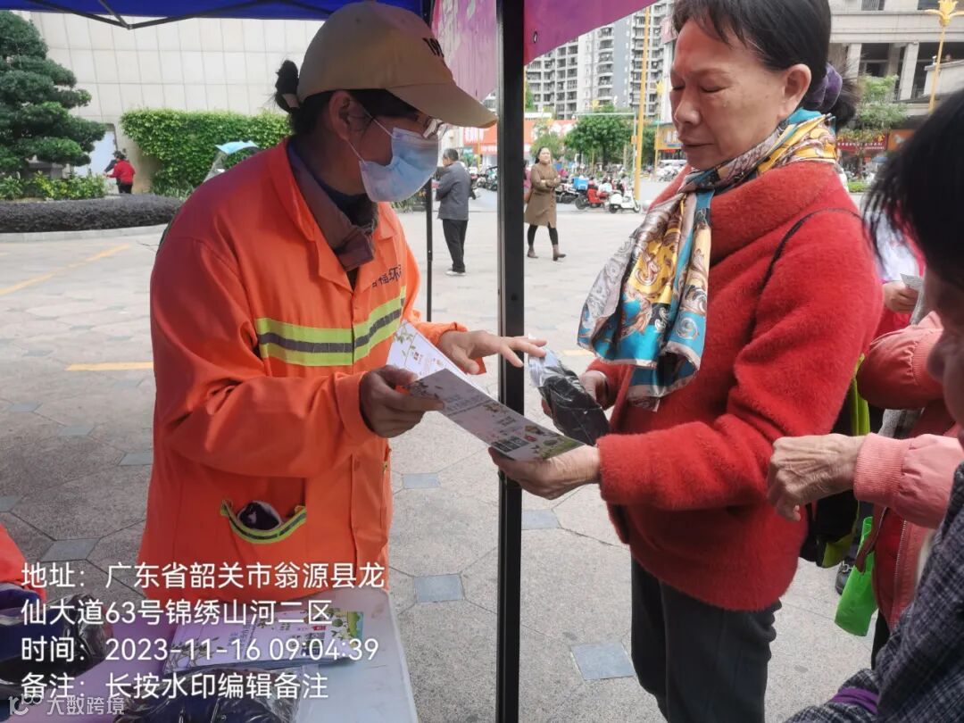 3、16号在锦绣山河二区开展“新时代、新环卫”垃圾分类宣传活动。