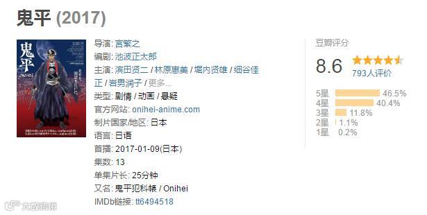 《鬼平》的出现无疑给漫迷带来了更多惊叹,而这部2017年的新番豆瓣评分高达8.6。(上一个这么屌的是EVA)