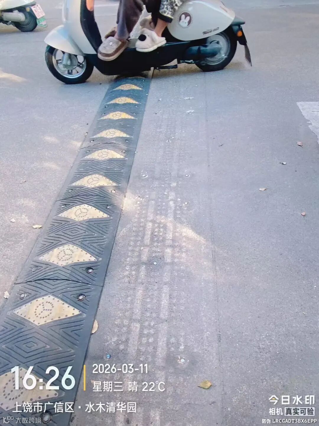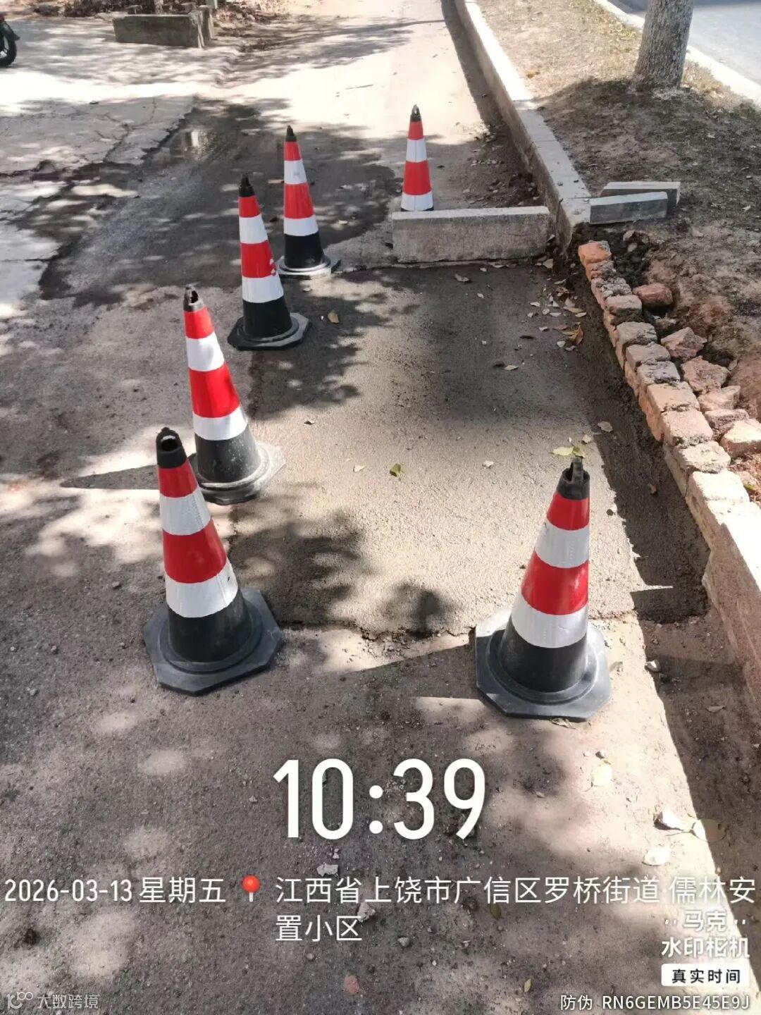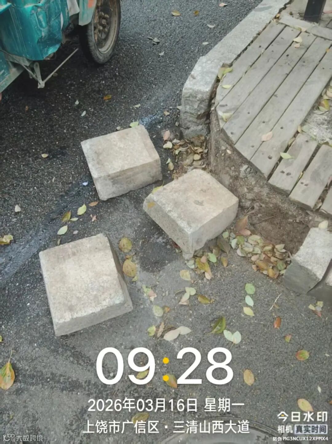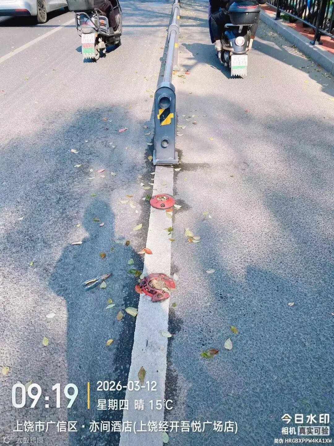 对三清山西大道33号(德宝车行)、旭日北大道(罗桥街道部队和中医院人行道)、七六路(水木清华园二期路口)等路面减速带拆除后遗留的废旧螺杆切割。