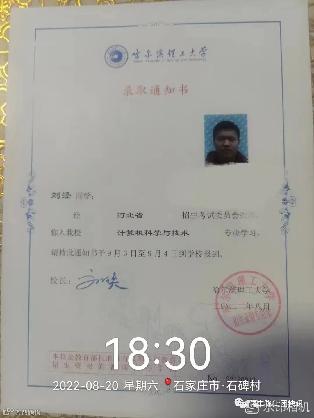 祝贺赞皇县刘庆华家的儿子刘泾被哈尔滨理工大学录取!