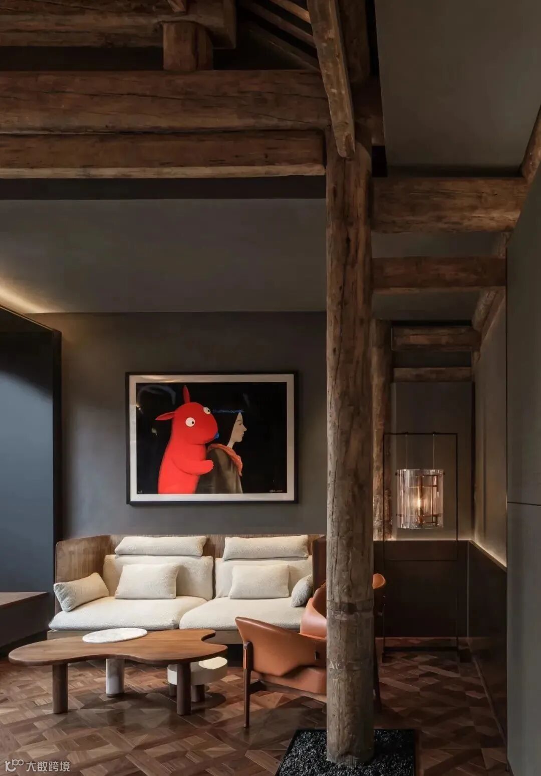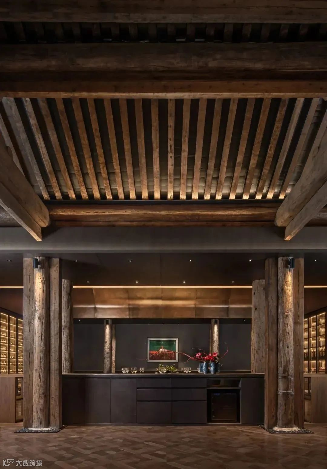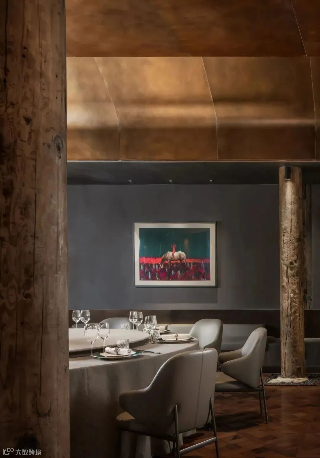 内部设计与家无异,现代美学在天然材质背景下反而升华成为更具艺术的美,每一处看起来都像是不同时代的交汇,更有拼花木地板从始至终蔓延。此时,去吃饭也就成了“回家”。