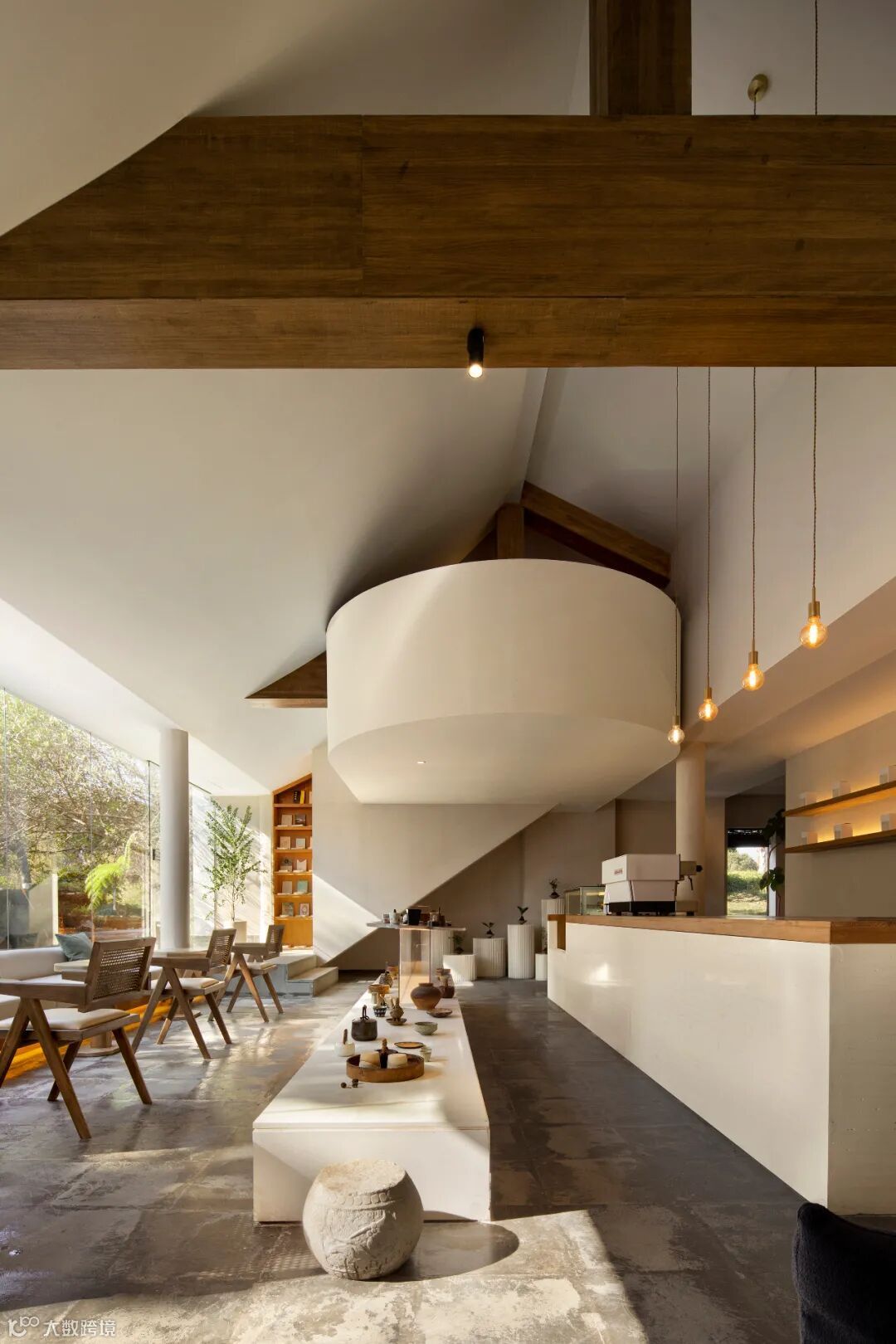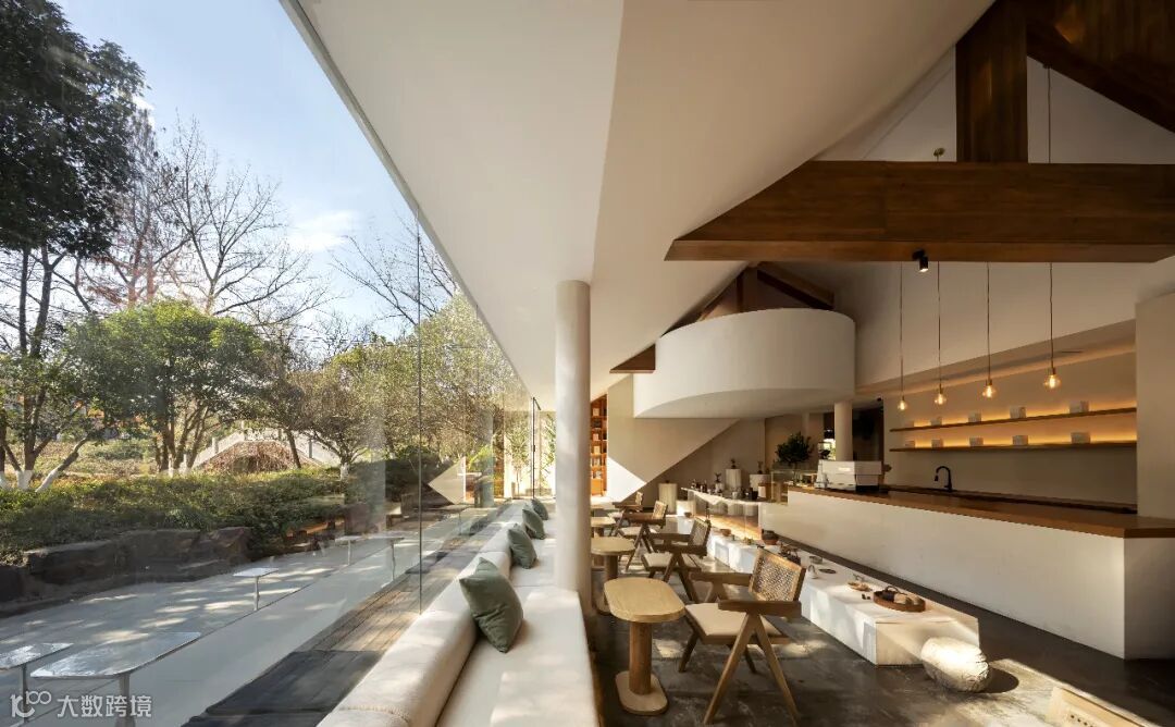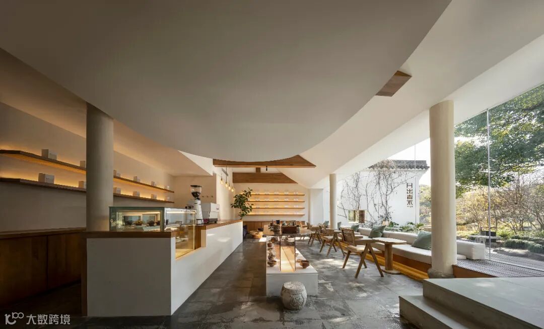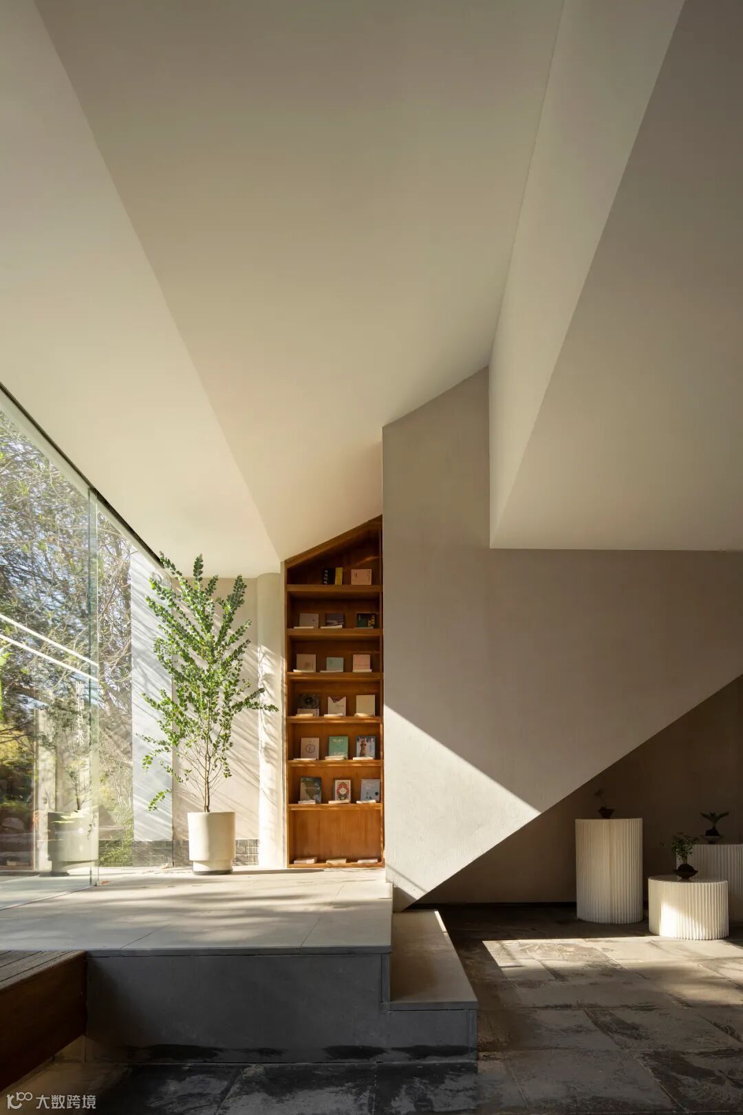 圆弧造型顶面取于书本翻开的形状,流畅的造型如阅读时文思泉涌的精神状态,空间因此也被赋予了精神气。